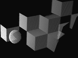 In the following images, a portion of a scanning sequence is shown (Fig. 3). The laser device projects a line on the objects of interest and an image is captured in the camera at every time interval. The detected laser light is then processed pixel-by-pixel in order to deduce the geometry of the objects (Fig. 4).